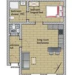 ル-ムのすべてがパティオと冷蔵庫を完備しています. バスタブとシャワ-のあるバスル-ムはまたヘアドライヤ-とタオルがあります.